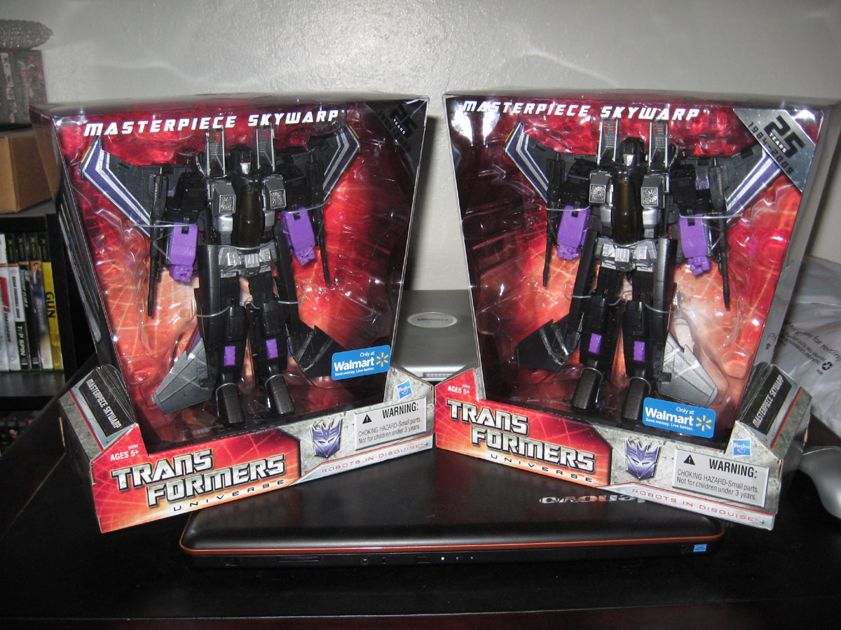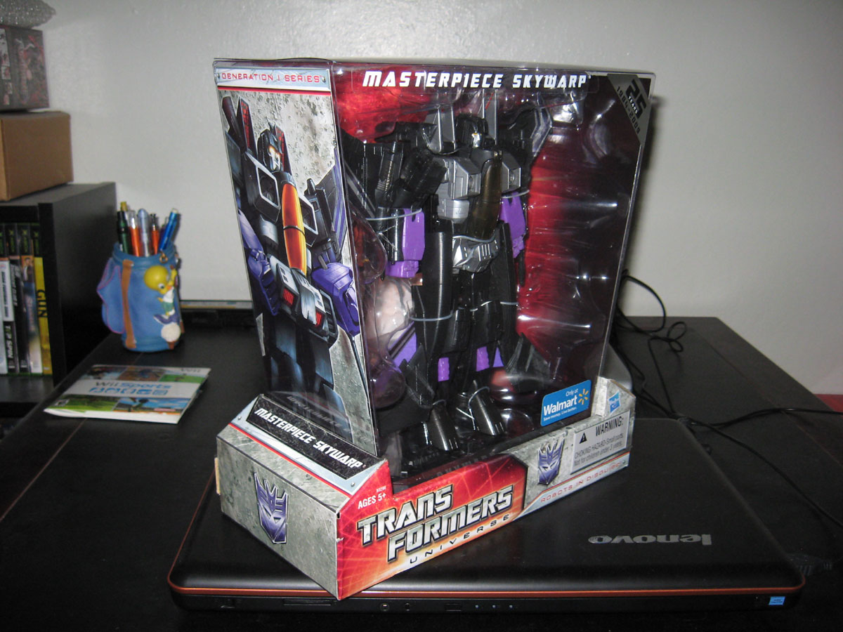 In an earlier post, I mentioned I am on the hunt for Masterpiece Skywarp. Today around noon I finally found him at the Walmart near my work. There are like 34 sightings on Seibertron by now. I don’t know why Northern California is so slow to get these, but I’m just glad I didn’t miss out on a US Masterpiece Edition. There were close to 2 dozen units of these in the store. The best part… only $55! Everyone else reported $60 so I’m getting a $5 break. Any savings is better than none.